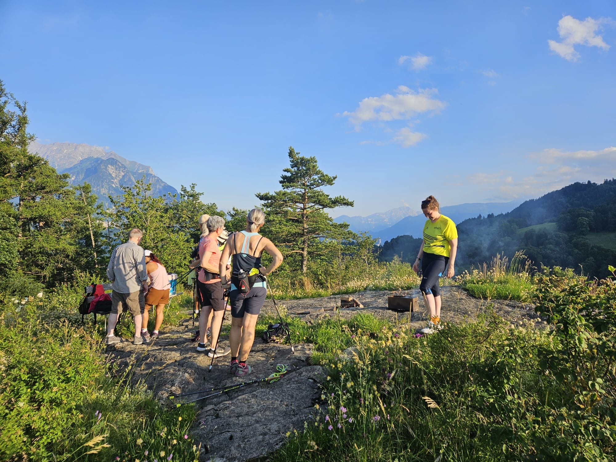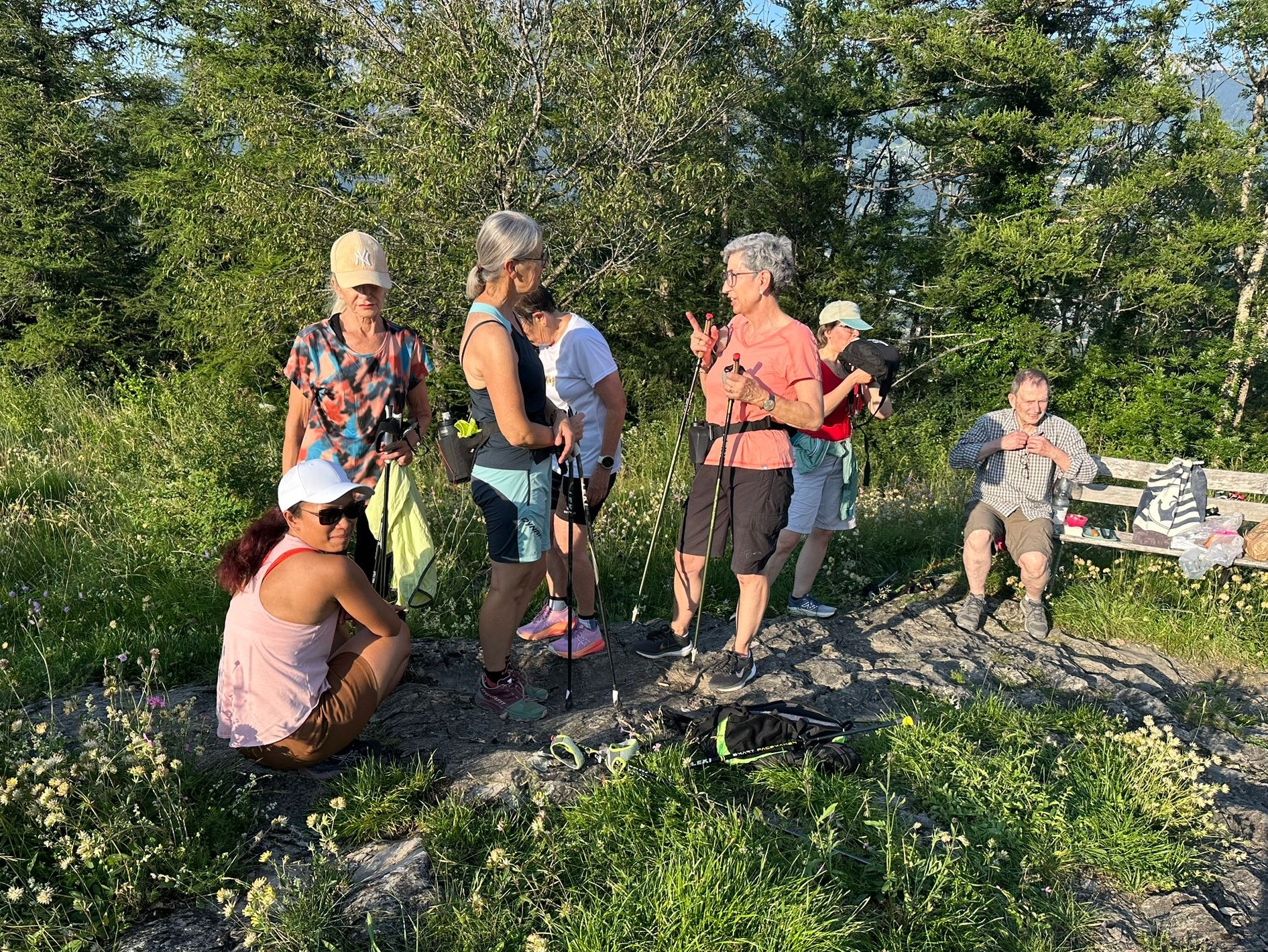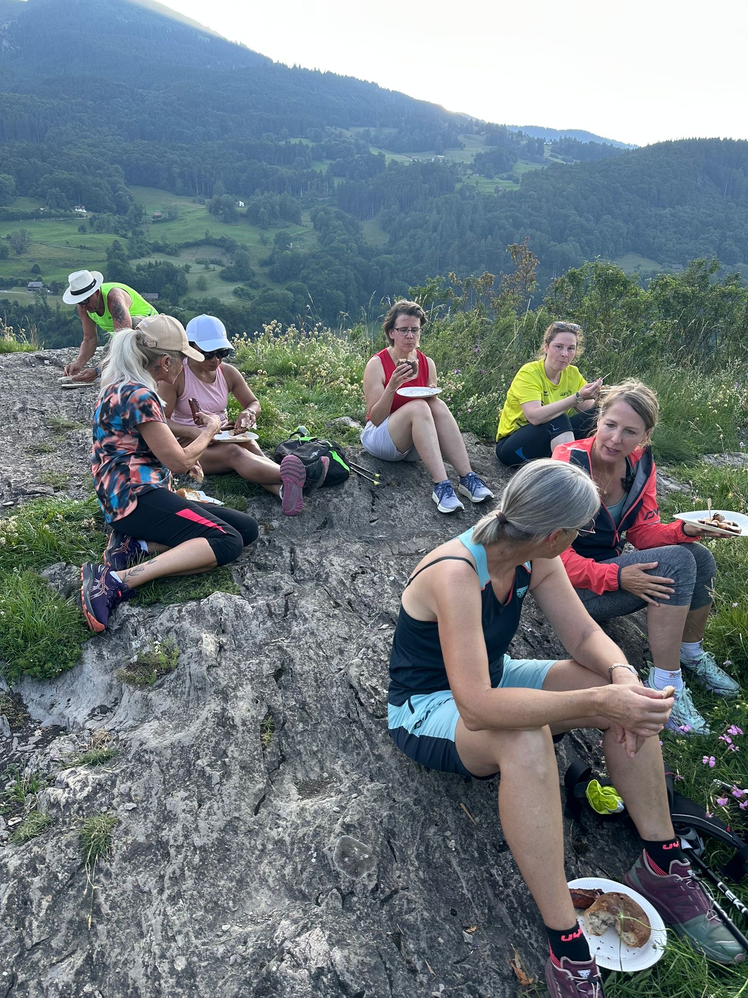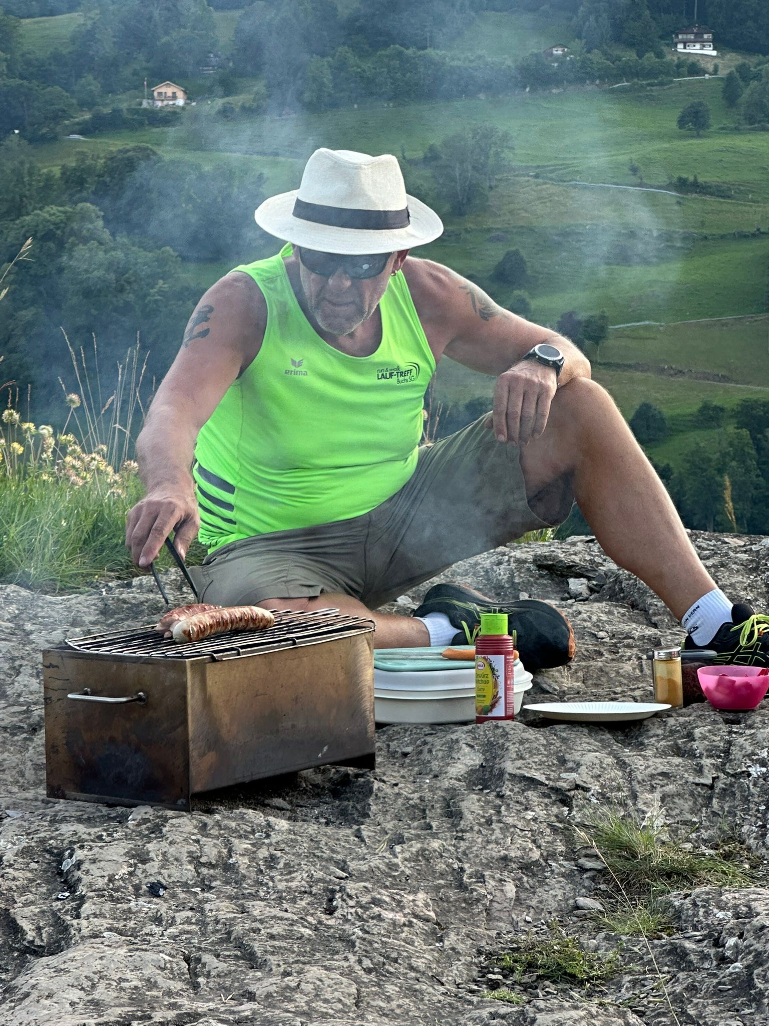 Die Lauftrefflerinnen und Lauftreffler waren auf dem Ansaspitz. Für die Walking-Gruppe gab es Würste vom Grill von Jakob. Vielen Dank. Lia steuerte einen Salat bei. Der Jogging-Gruppe genügte die tolle Aussicht.